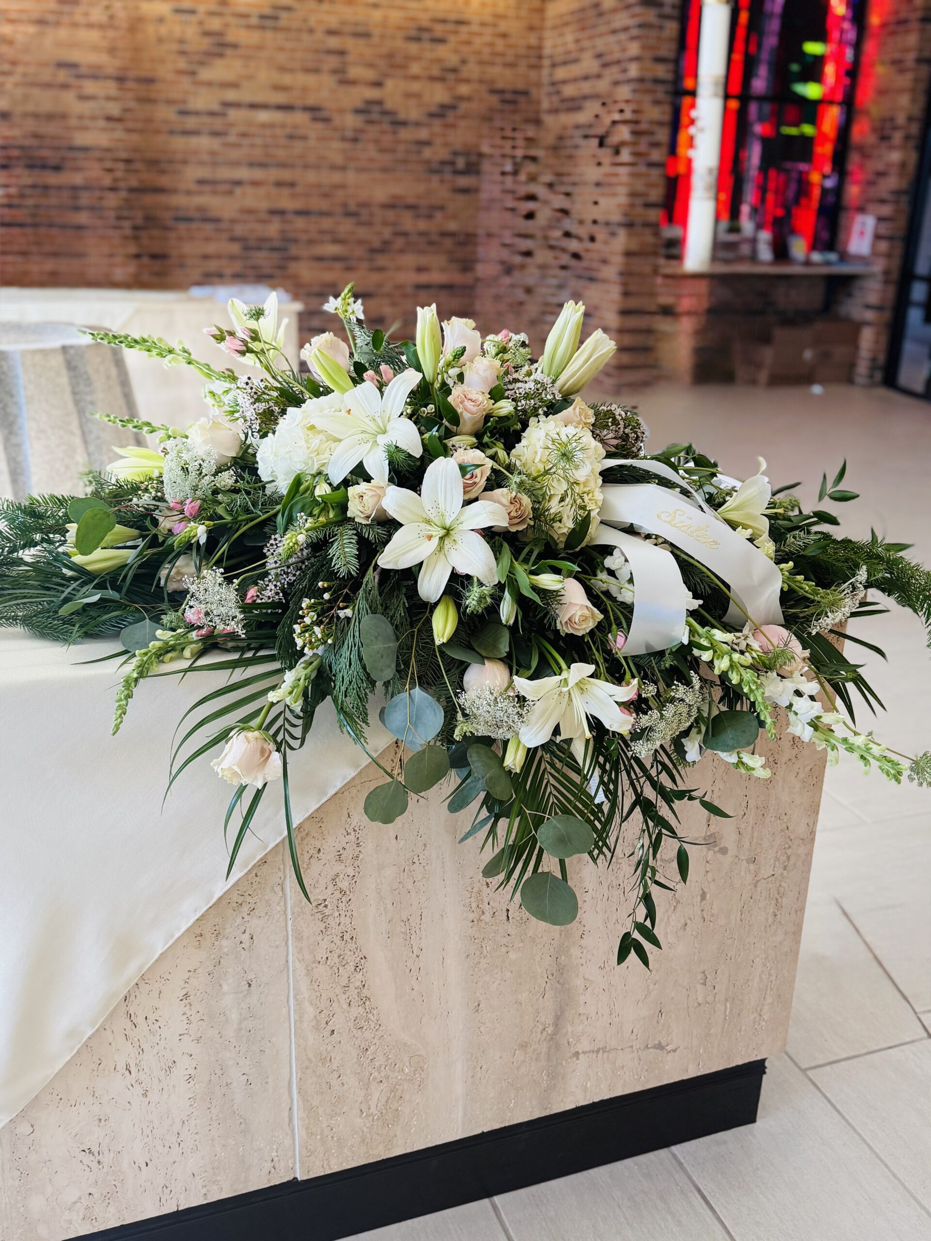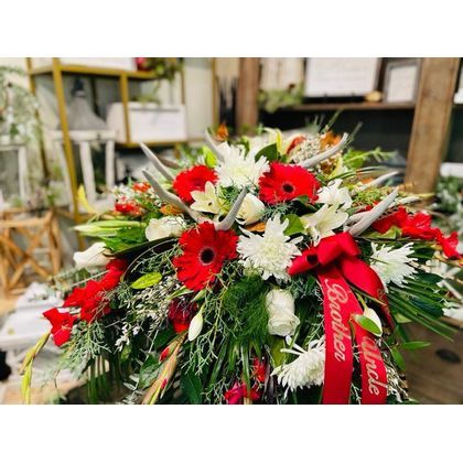 Send off your loved one with a beautiful & sentimental casket spray that is as spirited as they were. Our casket pieces are full of our freshest & most uplifting and breathtaking flowers that will be carefully arranged for the remembrance of your loved one.