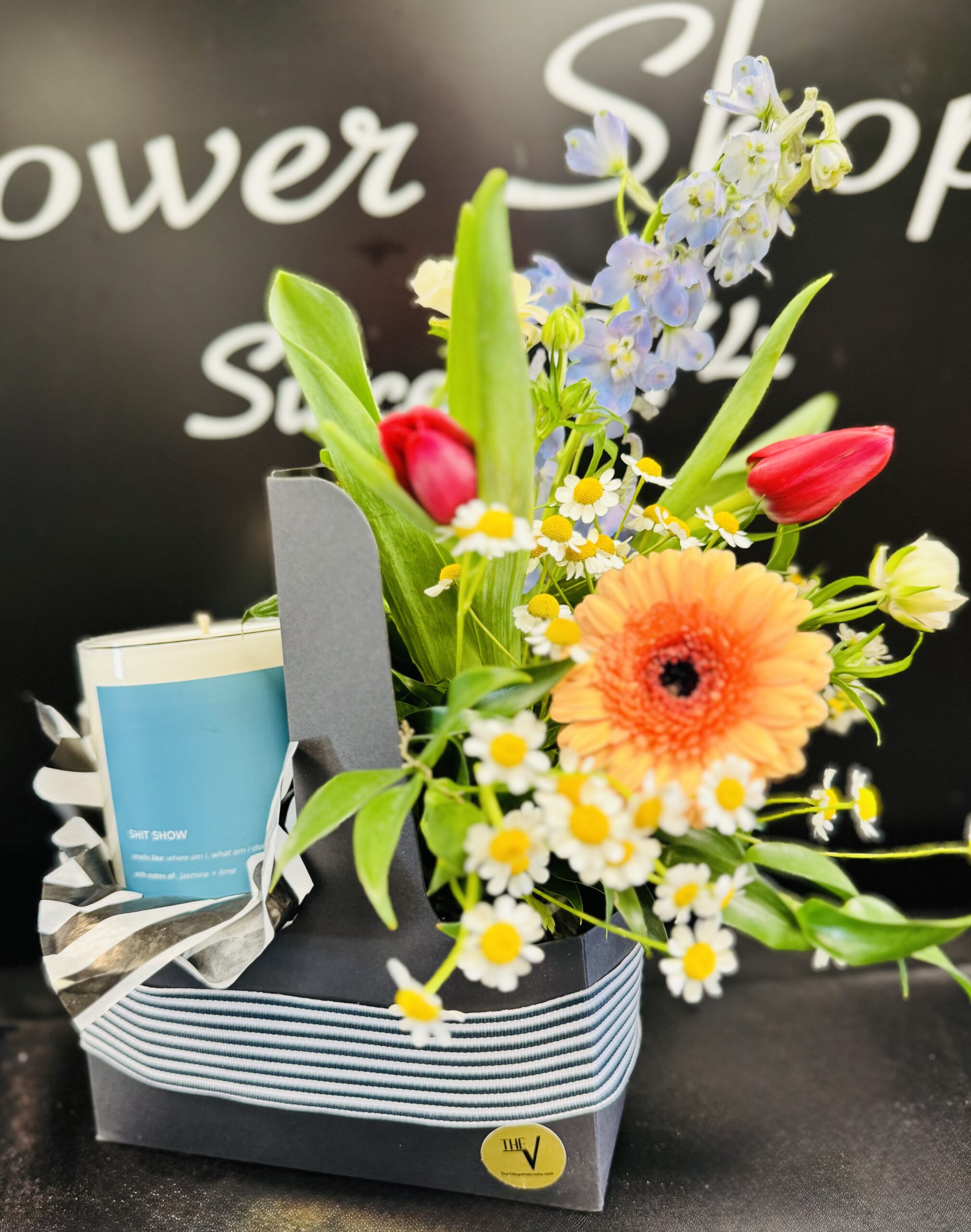 Sweet meets savage in this effortlessly stunning arrangement. Fun blooms of the season with a Toot candle tucked inside. Just enough attitude to keep it interesting. It’s beatiful, bold & a little untamed….and completely unforgettable.