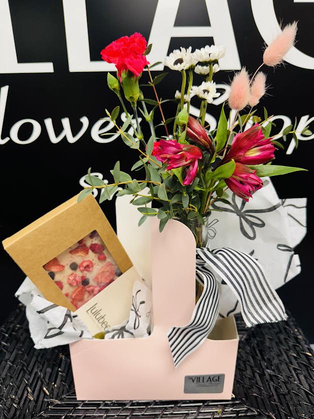 How sweet is this?! Includes a packed full of seasonal pixie and daisies & an oh so scrumptious Lulubee Chocolate bar hand-made right here in Nebraska! Perfectly packed in our on the run carrier!!!