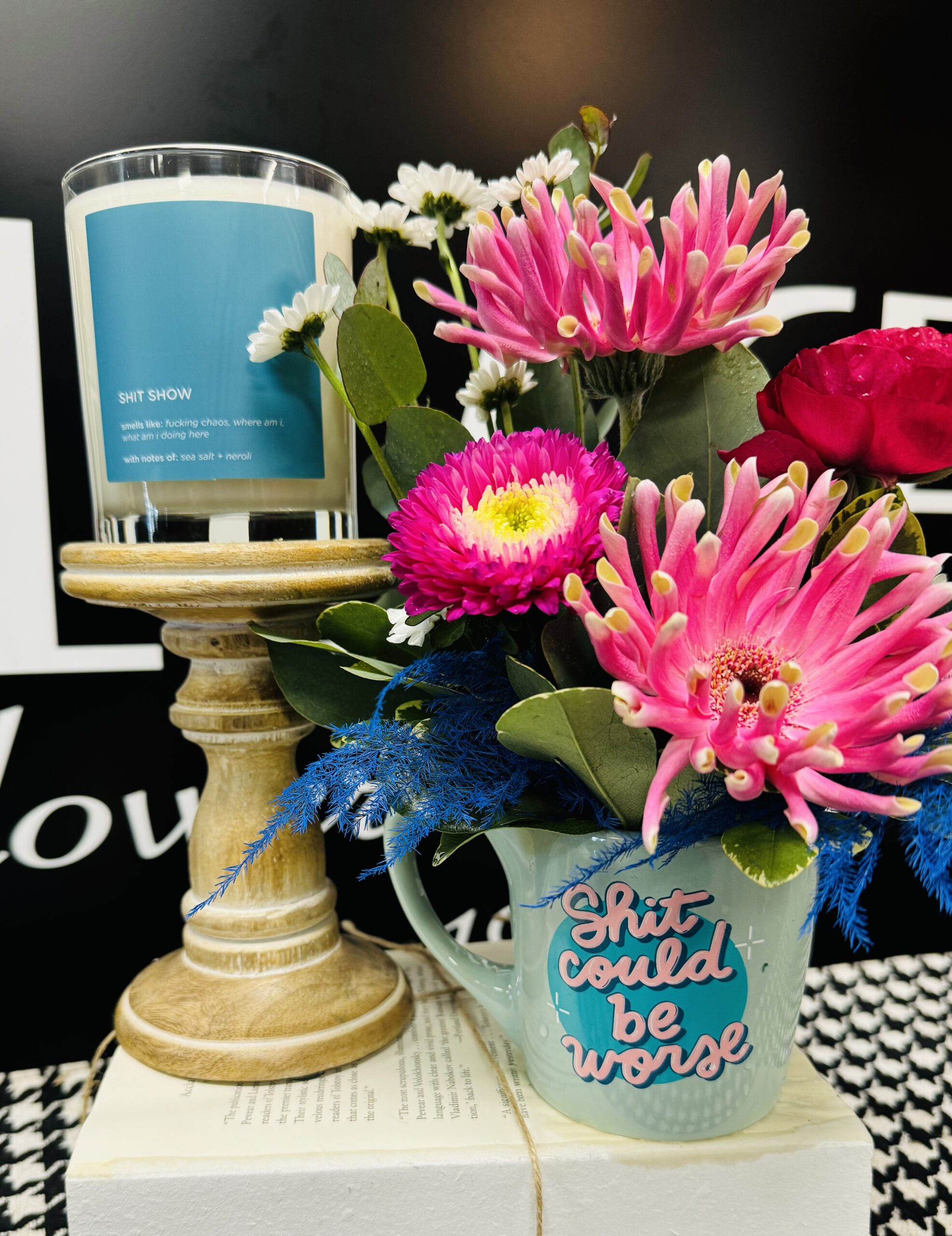 Send some laughter their way! You know who needs this. Choose your Candle and mug filled with the season’s most bad*ass blooms!